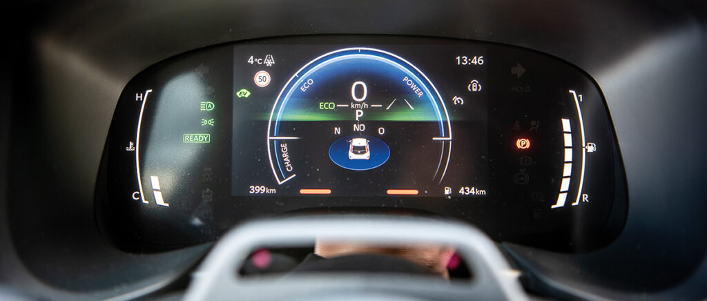 ‑Dreizylinder-Benziner mit einem Elektromotor, fährt beim Anrollen und im Bummeltempo oft rein elektrisch und bleibt da-