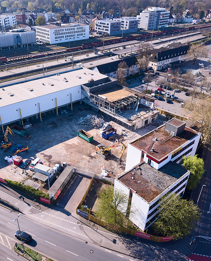 Mit einer Beißkraft von fast 100 Tonnen frisst sich die Abrissschere durch den Beton. Was vor vielen Jahrzehnten der Stolz der damaligen Bundespost war, befindet sich nun im Besitz einer gemeinsamen Projektgesellschaft des Gütersloher Unternehmens Hagedorn sowie des Bielefelder Projektentwicklers Christoph Borchard.
