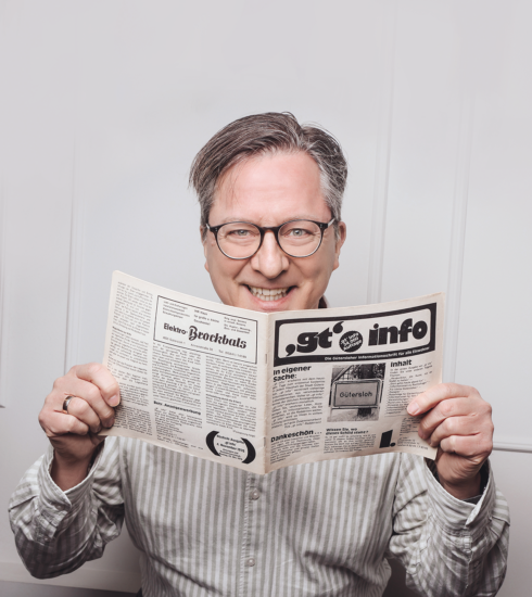 Ein großer Wechsel: Friedrich Flöttmann gibt das Magazin ab. Seit März 2021 heißt es jetzt gt!nfo und wird von der frisch gegründeten Lokalwerkstatt herausgegeben. Geschäftsführer und Herausgeber sind Markus Corsmeyer und Wolfgang Sauer, bisher Redaktions- und Anzeigenleiter im Flöttmann Verlag. Das Magazin erfindet sich als Autorenmagazin neu, das Ausrufezeichen im Logo steht für Selbstbewusstsein und frischen Wind. Relaunch online und in Print inklusive. Corsmeyer startet mit dem Podcast „4830“ ein weiteres Erfolgsformat – erster Gast: Güterslohs frisch gewählter Bürgermeister Nobby Morkes. Im Januar 2023 feiert gt!nfo die 555. Ausgabe mit viel Lob und Bekenntnissen. 2026 steht ganz im Zeichen des 50-jährigen Jubiläums – ein halbes Jahrhundert voller Geschichten, Wandel und Leidenschaft für Gütersloh.