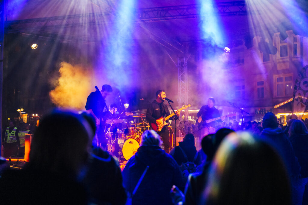 Der neue „Gütersloher Feierabend – Sunset Markt“ feierte ab März Premiere auf dem Konrad-Adenauer-Platz. Unter wechselnden Themen wie „Lagerfeuer“, „Karaoke“ und „Reggae“ bot der Markt eine Plattform für ent- spanntes Beisammensein, gutes Essen, Getränke und Live-Musik. Die Veran- staltung wurde schnell zum beliebten Treffpunkt zum Wochenend-Ausklang