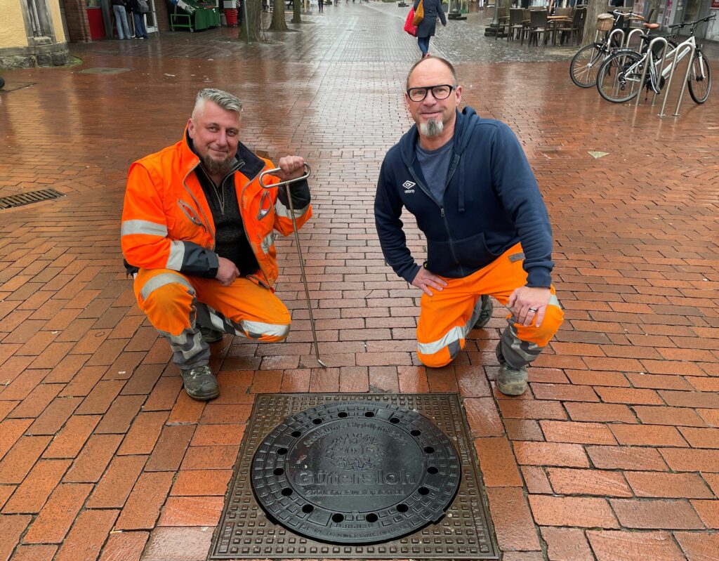 Zugänge zur unterirdischen Infrastruktur erhalten in Gütersloh einen neuen Glanz: Statt gewöhnlicher Schachtdeckel zieren jetzt die Jubiläums-Gullideckel zahlreiche Straßen in Gütersloh. Realisiert durch den Fachbereich Tiefbau brin- gen diese kleinen Hingucker einen festlichen Akzent in die Innenstadt und zeigen, dass Jubiläumsfreude auch in Details sichtbar wird.