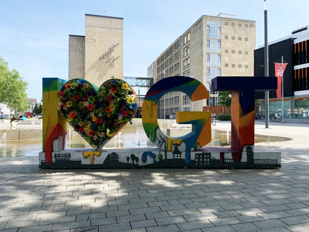 Nicht nur Pflanzungen und Details im Boden, auch urbane Symbole setzten Akzente. So wurde der Schriftzug „I GT“ passend zum Stadtjubiläum prominent in Szene gesetzt – ein beliebter Treffpunkt und Fotomotiv, das Verbundenheit und Liebe zur Stadt charmant ausdrückt.