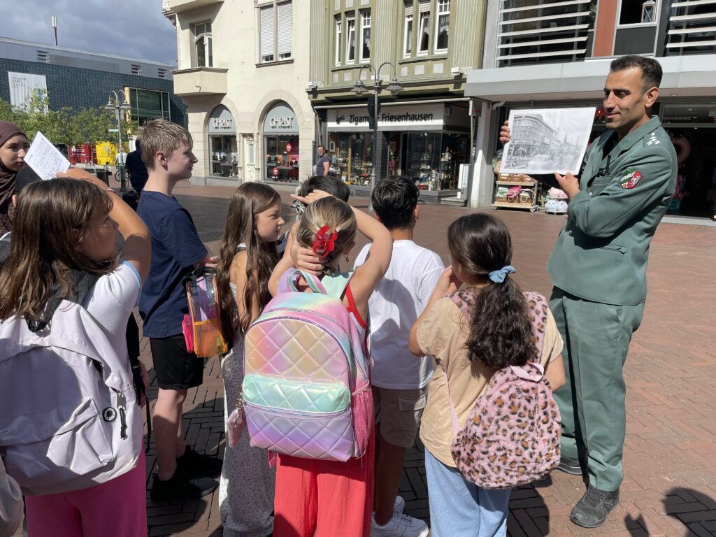 Für Schulklassen brachte eine interaktive Stadtrallye die Vergangenheit lebendig ins Heute. Sechs Stationen in der nnenstadt zeigten das Leben in Gütersloh vor 50 Jahren – vom Rathaus über das Stadtmuseum bis zur Elly-Heuss-Knapp-Realschule. Die Kinder konnten auf spielerische Weise Geschichte erfahren und entdecken, wie sich die Stadt im Laufe der Jahrzehnte verändert hat.