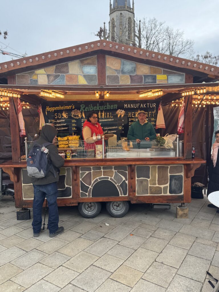 Auf dem Gütersloher Wochenmarkt in der Innenstadt tut sich was. Gleich zwei Neuerungen bringen ab jetzt zusätzlichen Schwung auf den Citymarkt, die der veranstaltende Fachbereich Ordnung nun gewinnen konnte. Ab jetzt gibt es auf dem Citymarkt auf dem Berliner Platz einen neuen genussvollen Imbiss: Der Reibekuchenstand von Familie Heppenheimer ist nun dienstags, donnerstags und samstags fester Bestandteil des Marktgeschehens. Frisch gerieben, goldbraun gebraten und herrlich knusprig – hier trifft traditionelles Handwerk auf ehrlichen Geschmack. Wer also Lust auf einen herzhaften Snack hat oder den Marktbesuch mit einer warmen Köstlichkeit krönen möchte, kann dort nun regelmäßig vorbeischauen.