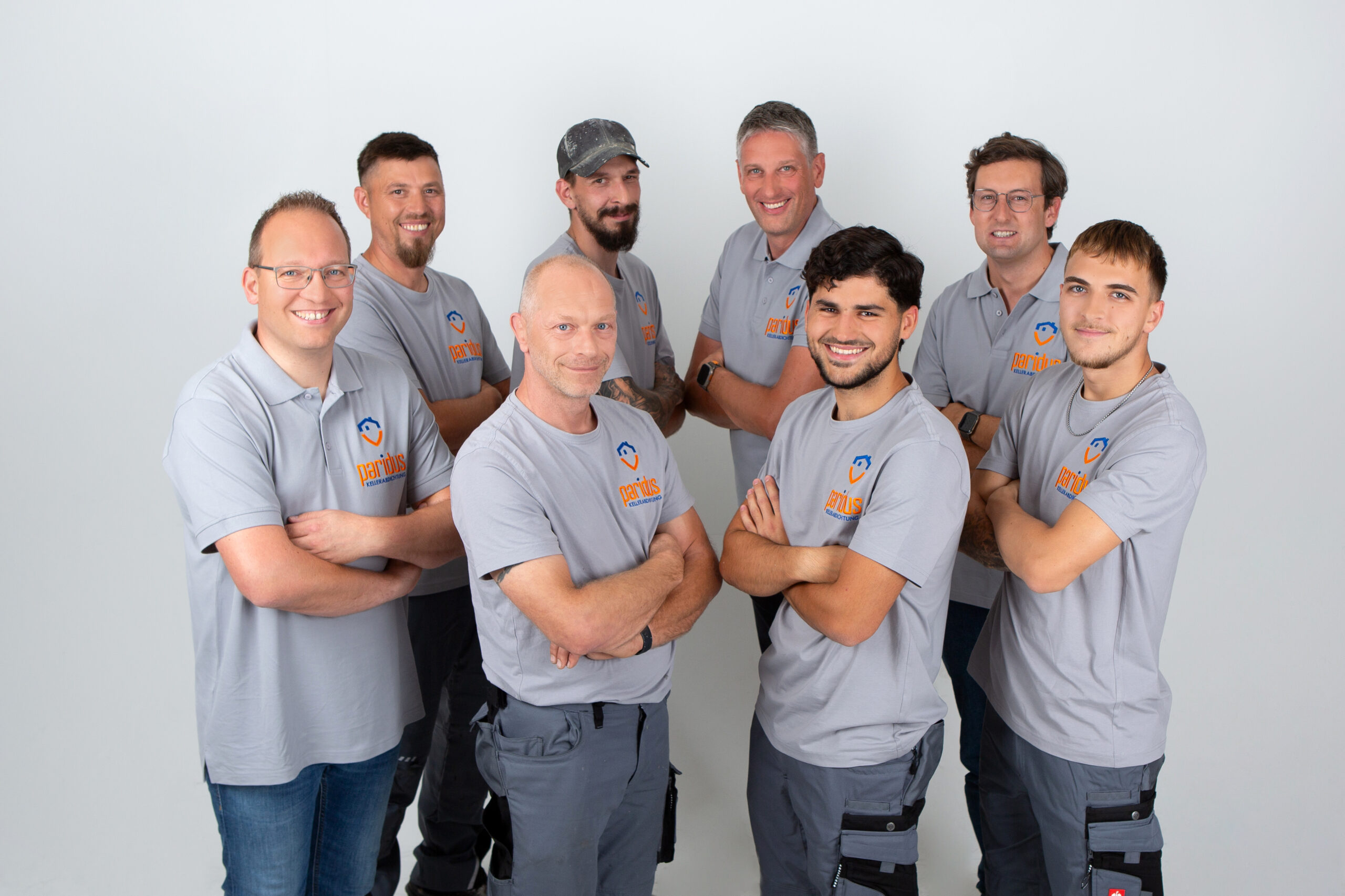 Das Paridus-Team: Ingo Klösener, Denis Scheffler, Detjon Kastrati, Lars Huber (vordere Reihe v.l.n.r.). Dimitri Katkov, Lukas Widder, David Hensdiek, Philipp Avenwedde (hintere Reihe v.l.n.r.).