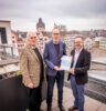 Bz: Ein Zeichen für Vielfalt am Standort Wiedenbrück (v.l.): Emilian Klein (Vorstandsmitglied der Kreissparkasse Halle-Wiedenbrück), Nikola Weber (pro Wirtschaft GT), Dirk Bathe (wertkreis Gütersloh), Marcel Knüwer, (Leiter BeratungsCenter Wiedenbrück) und Volker Ervens (Wirtschaftsinitiative Kreis Gütersloh).