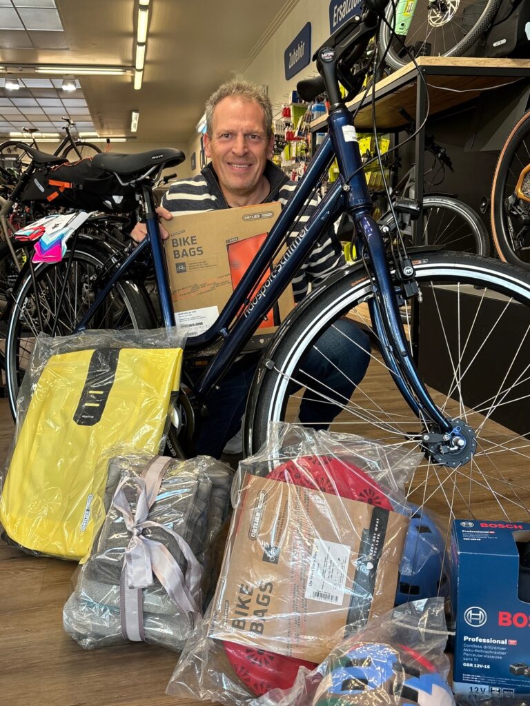 Hauptpreis der Tombola: Jürgern Männel präsentiert ein Rad aus der Fahrradmanufaktur Wittich-Bikes – ein tolles Customize-Rad im Wert von 1.000 Euro.