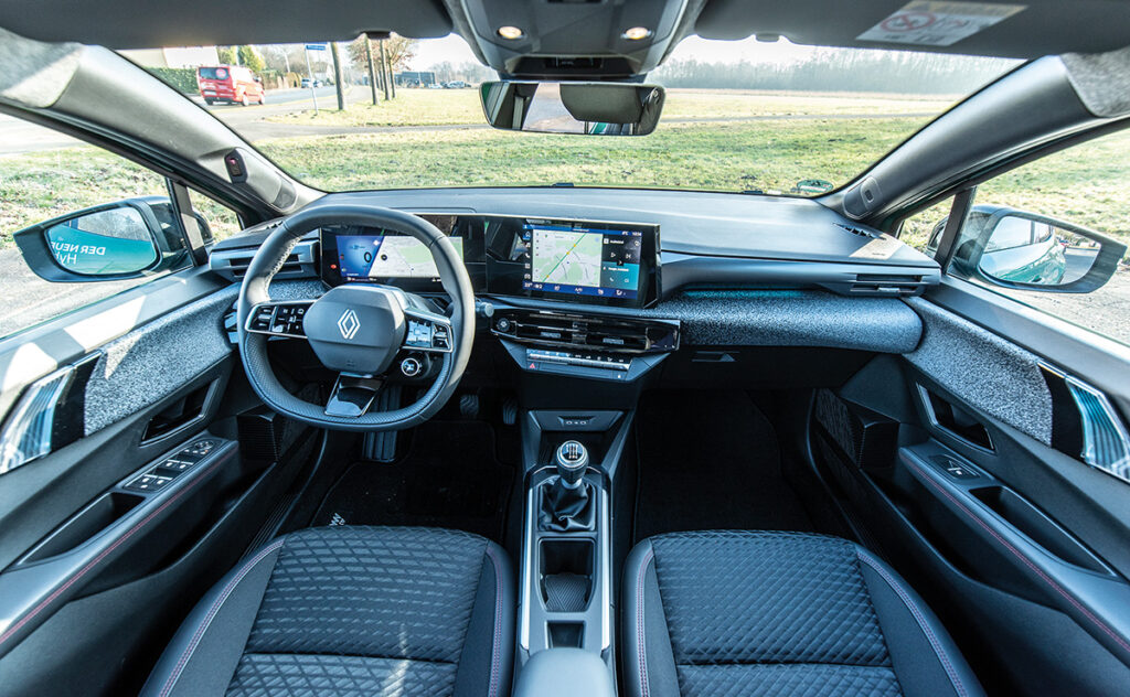 Im Innenraum setzt Renault auf französische Raffinesse und digitale Klarheit. Materialien, dort wo die Hände oft verweilen, sind angenehm weich. Der große, leicht zum Fahrer geneigte Bildschirm wirkt wie aus einem Guss – intuitiv, reaktionsschnell, ohne Technikprahlerei. Hier kämpft man nicht mit der Software, sondern benutzt sie einfach. Besonders gelungen: das Ambientelicht in dezenten Farben, das den Abendverkehr fast poetisch erscheinen lässt.