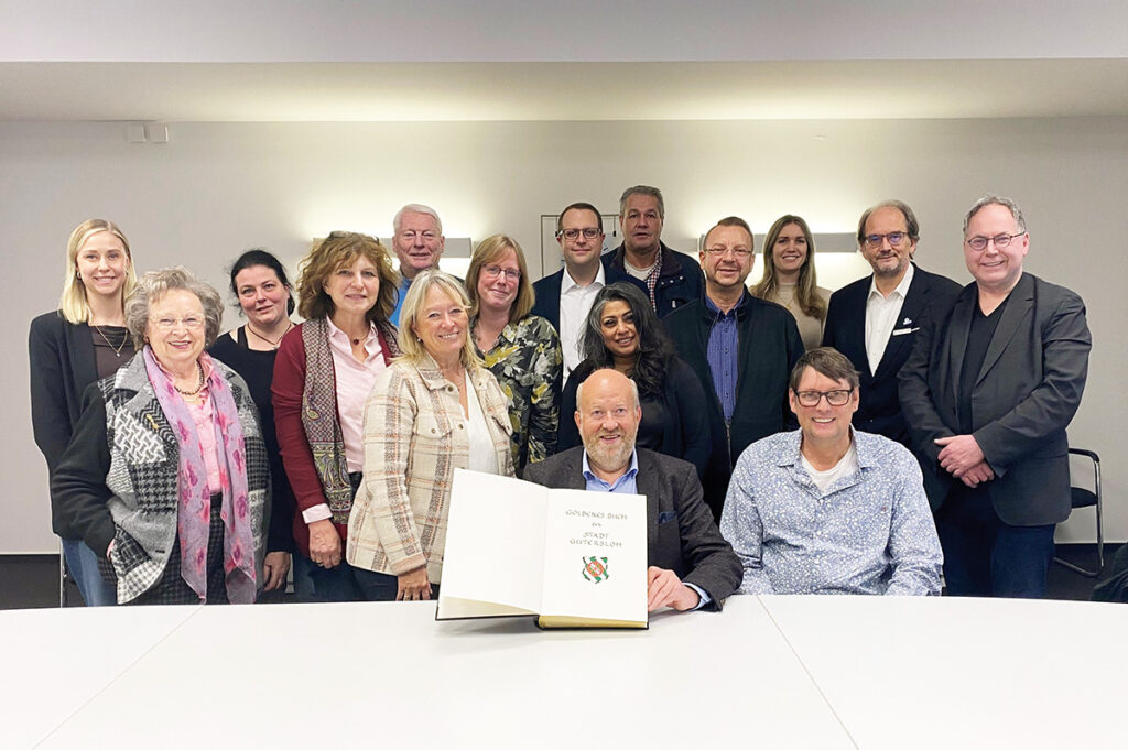 Gütersloher Stadtführerinnen und Stadtführer nehmen Einblick ins Goldene Buch der Stadt